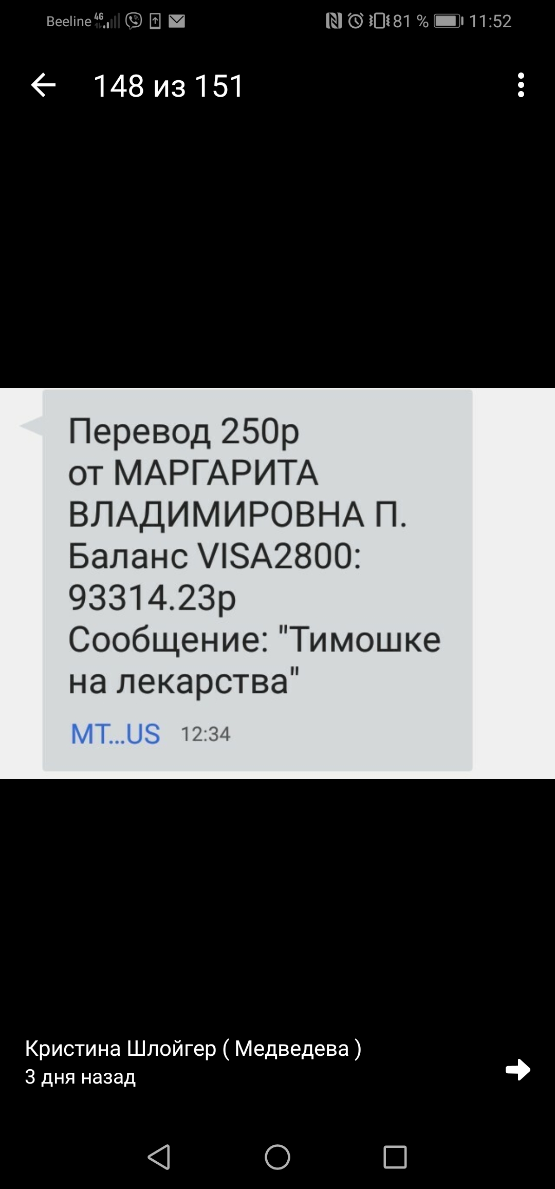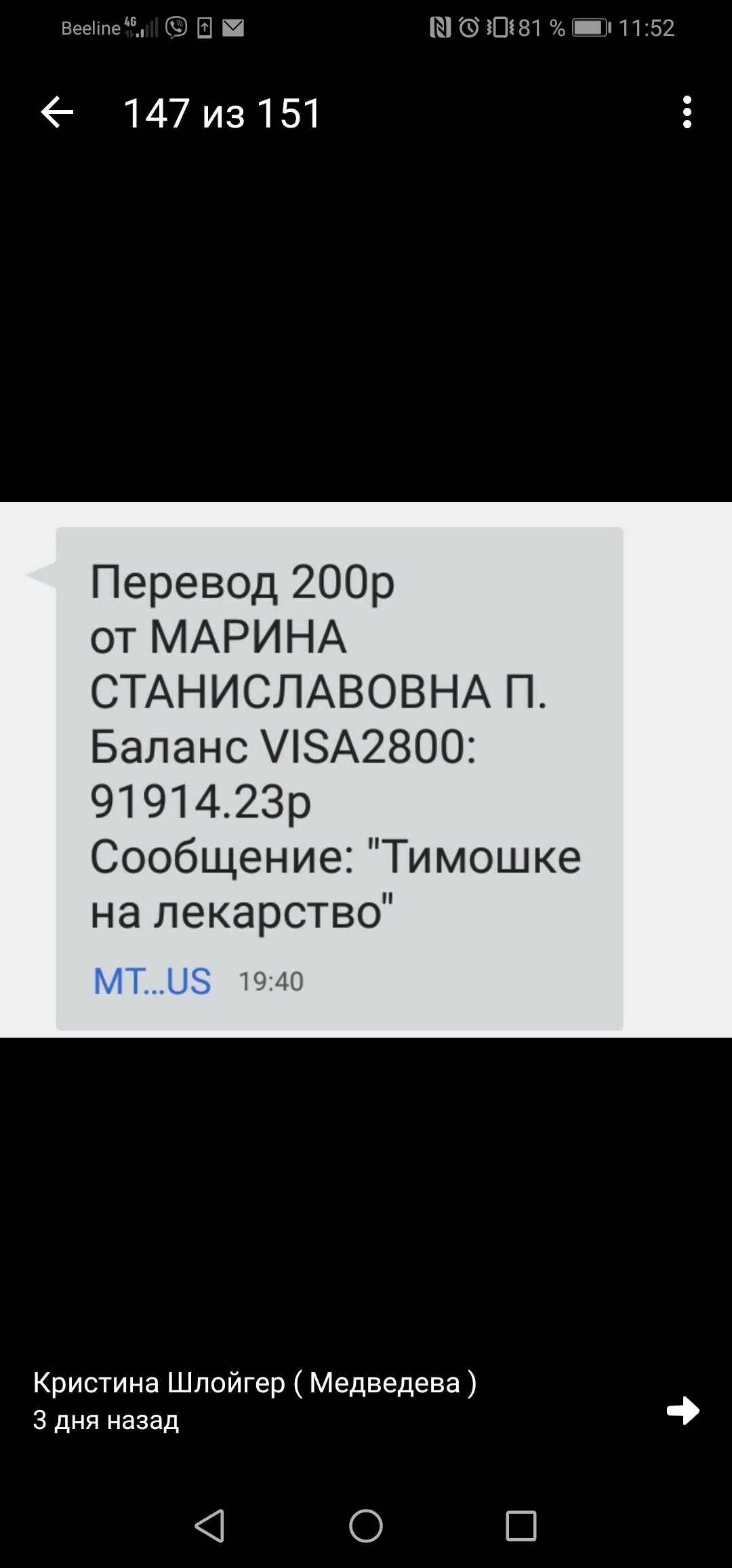 ПОМОГИТЕ ПОЖАЛУЙСТА карта группы 4276 2600 4645 2800 получатель Кристина Николаевна карта привязана к телефону 8913 074 4861....голодный телефон 8923 468 6128 звонки не принимает