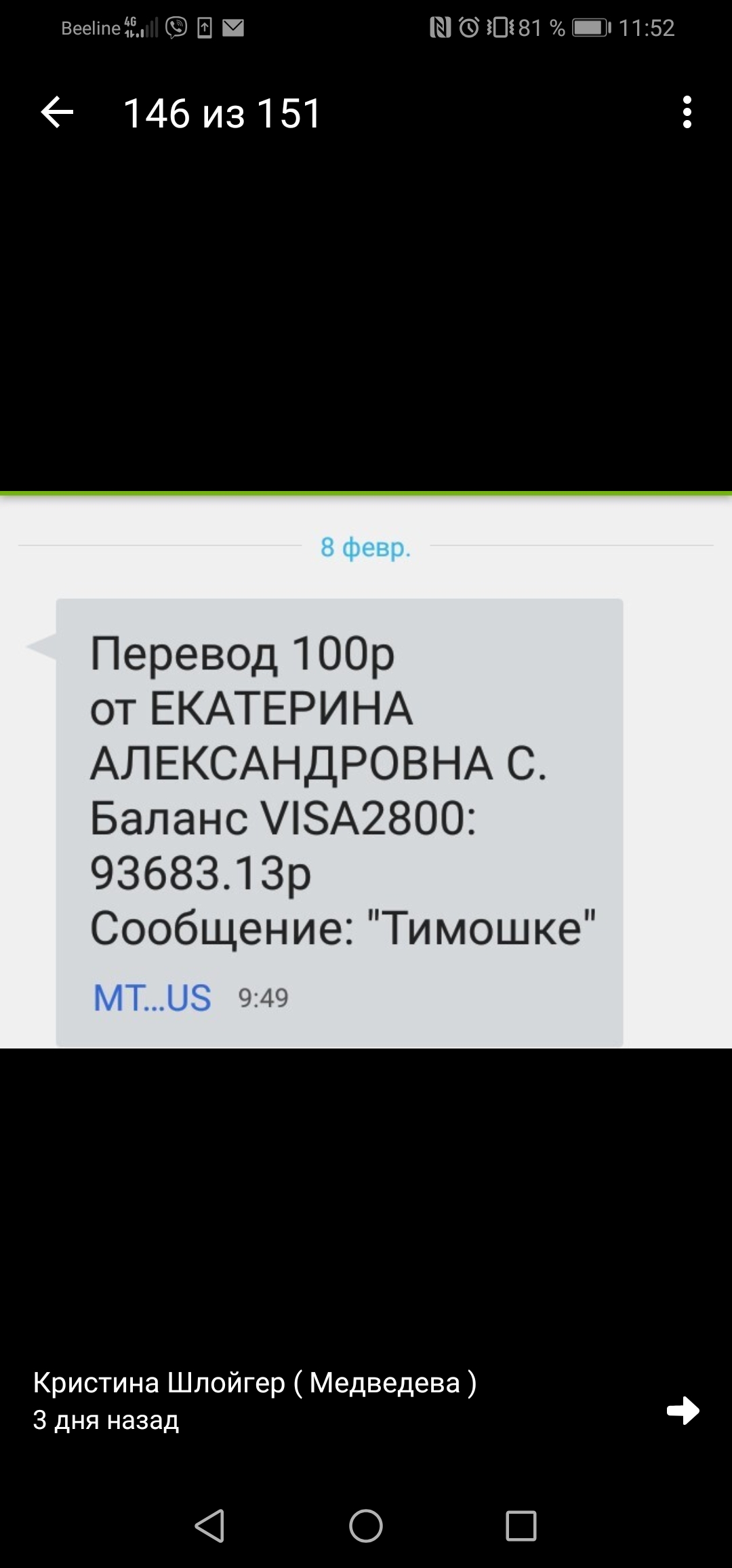 Сбербанк, получатель Кристина Николаевна Ш (карта привязана к тел. 8-913-074-4861