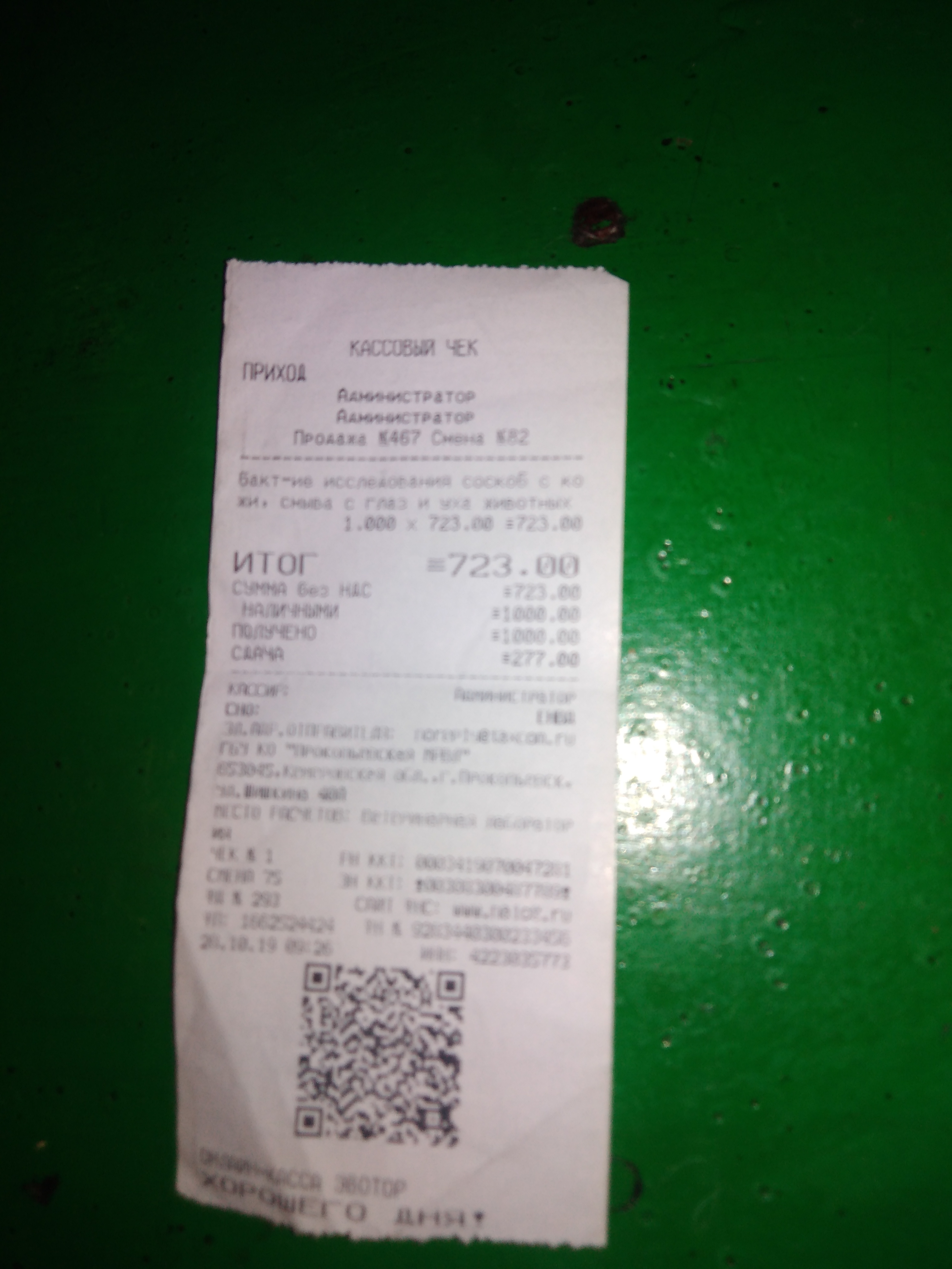 Счёт получателя №40703810626000001038 от 17.10.2019