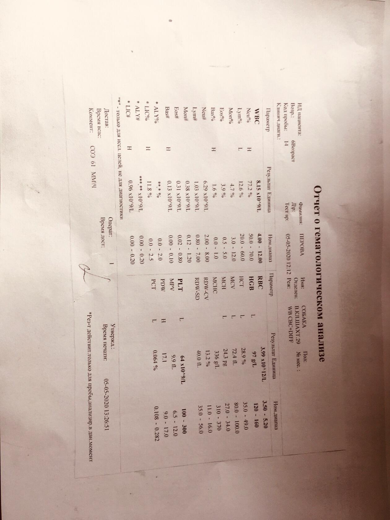 07.05.20 - 2 950. 00 - оплата вызова ветеринара, анализов, манипуляций. (результаты анализов прилагаю)