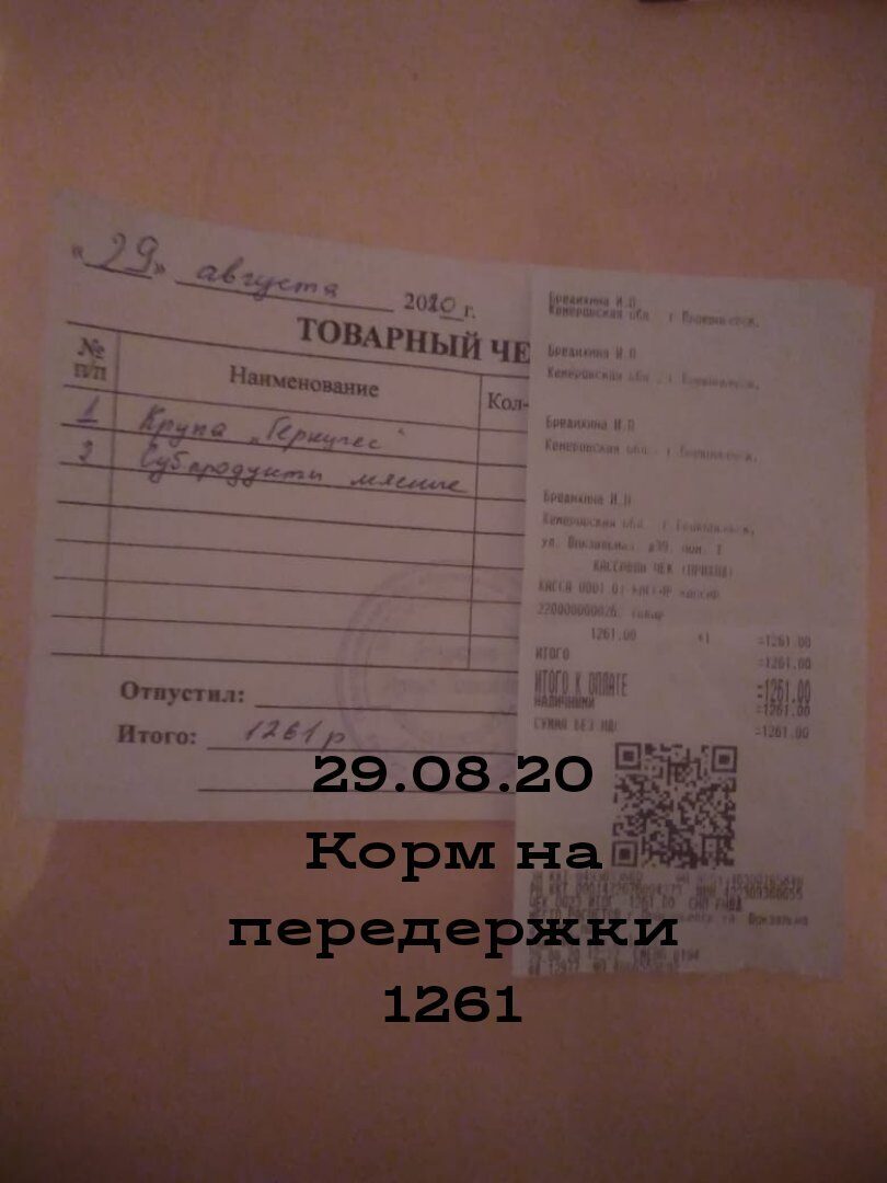 12.08.20 - 900.00 - шприцы и корм для #Лада_узница