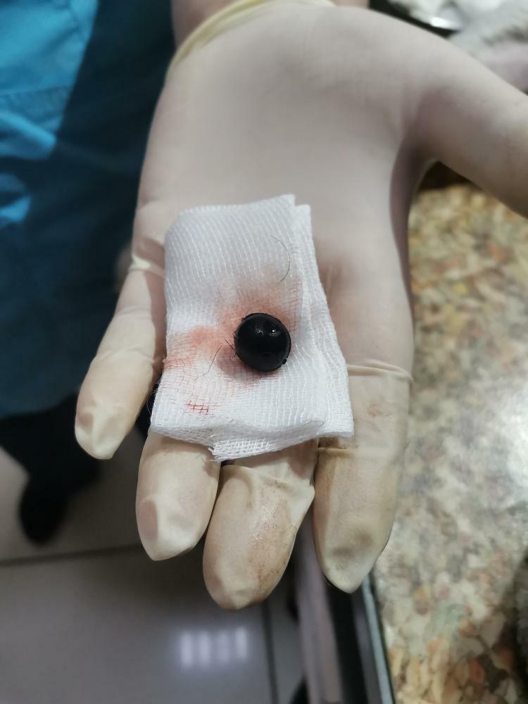 По приезду в клинику выяснилось что это стреляная рана от пневматического оружия в упор.