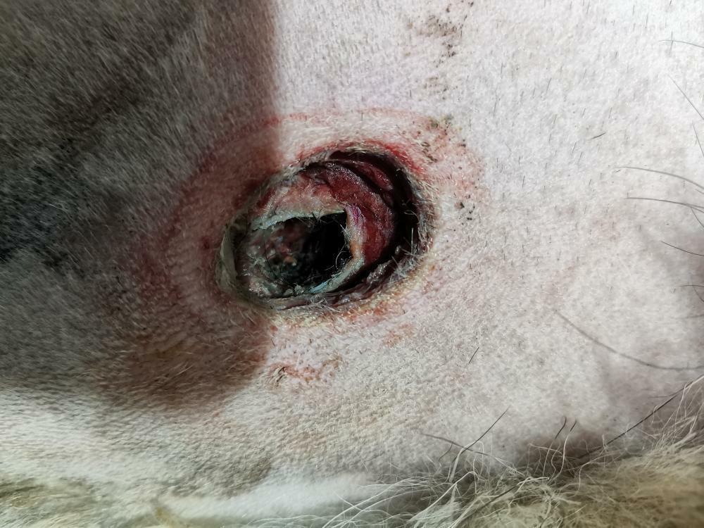 Собаку, которую любили все дети во дворе и даже дворник однажды обнаружили с раной похожей на рулевое отверстие.